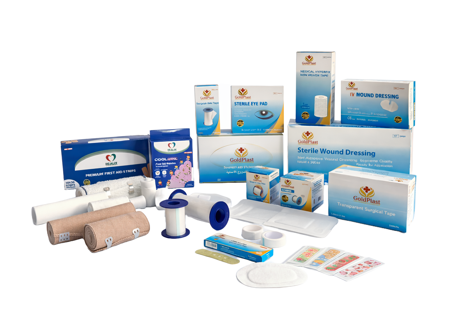 GoldPlast offers a comprehensive portfolio that includes non-woven wound dressings, zinc oxide silk plasters, surgical tapes, IV dressings, and a range of first aid products. Each product is carefully manufactured to meet recognized global standards, supporting safety, hygiene, and effective patient care.