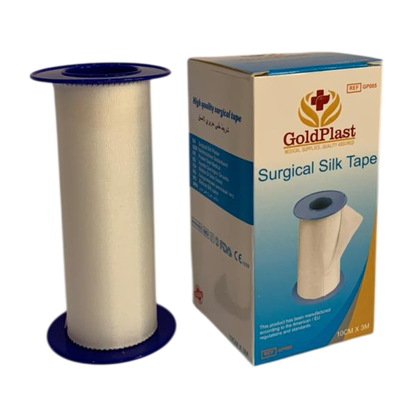 GoldPlast Zinc Oxide Silk Plaster is a high-quality medical adhesive tape designed for secure and comfortable fixation in a wide range of clinical and everyday applications. It is made with a silk-like fabric backing combined with a zinc oxide adhesive layer, which provides strong adhesion while still being gentle on the skin, helping to reduce irritation during wear and removal. The product is available in different widths and roll sizes, allowing it to be used for various purposes such as securing wound dressings, bandages, cannulas, catheters, and medical devices, as well as providing additional support for minor strains or joint stabilization. Its breathable structure helps maintain skin comfort by allowing air circulation, while the zinc oxide component adds protective and soothing properties, making it suitable for sensitive or long-term use. Because of its strong holding power, flexibility, and ease of tearing by hand, GoldPlast Zinc Oxide Silk Plaster is widely used in hospitals, clinics, and first-aid settings, as well as for general home care applications where reliable fixation and patient comfort are essential.
