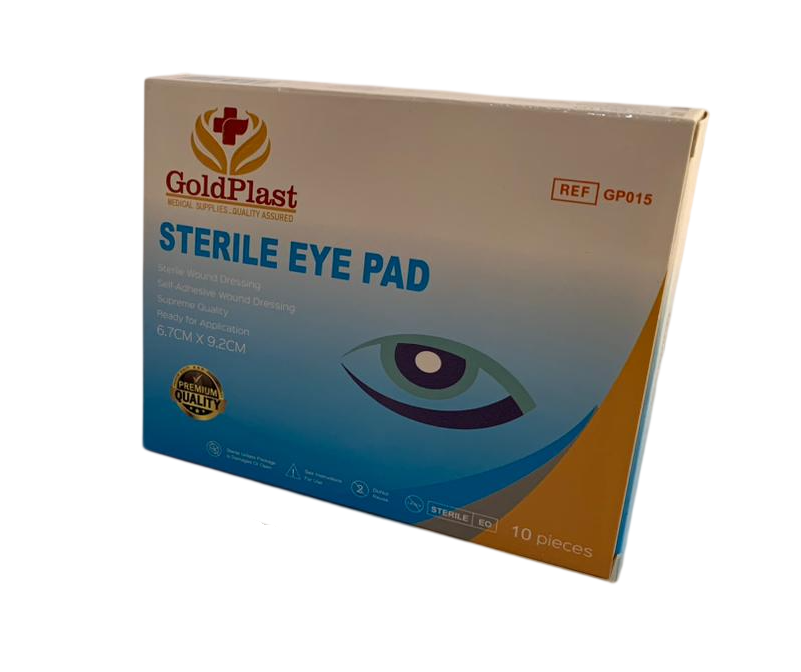 GoldPlast Eye Pad Plaster is a sterile, soft, and highly absorbent medical dressing designed specifically for protection and care of the eye area following injuries, surgeries, or medical treatments. It features a gentle non-woven or cotton pad that provides cushioning and absorbs any discharge, while the surrounding adhesive layer ensures secure fixation without causing discomfort to the delicate skin around the eye. The plaster is available in different shapes and sizes to properly fit various facial contours, ensuring full coverage and optimal protection for both adult and pediatric use. Its hypoallergenic adhesive is formulated to minimize skin irritation, making it suitable for sensitive skin and extended wear when needed. The design allows for easy application and removal, reducing stress on the patient while maintaining hygiene and safety standards. GoldPlast Eye Pad Plaster is commonly used in ophthalmic care, post-operative recovery, and emergency first aid to protect the eye from light, dust, and external contamination while supporting a clean and safe healing environment.